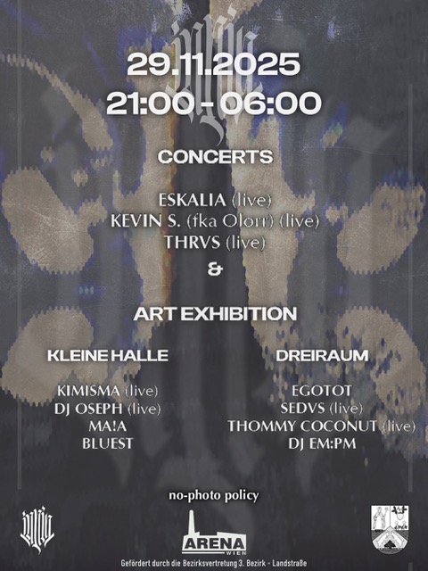 πππππ returns to the infamous Arena Wien with another heated gathering – a collision of worlds and enfants terribles shaping the night.The trip begins with a series of experimental live concerts and a multidisciplinary art exhibition. As night falls, a high-energy lineup ignites two floors with gritty, forward-driving and boundary-pushing techno that’s blurring the lines between realms.