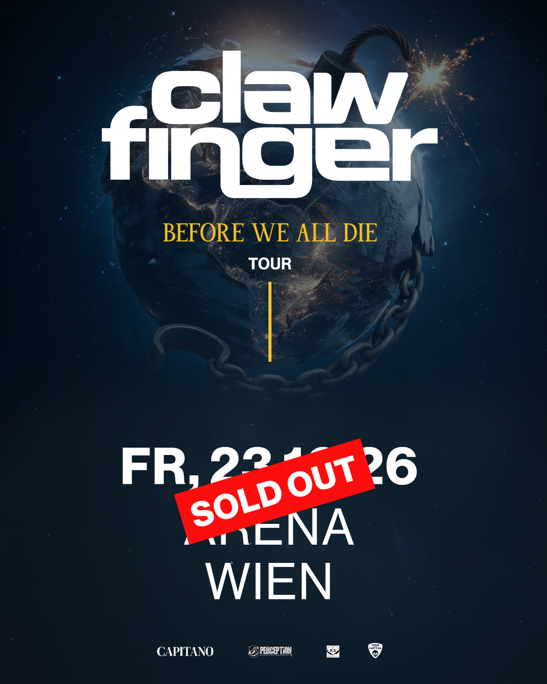 Loud, angry, dark, humorous and brutally honest, CLAWFINGER’s “Before We All Die”Tour is everything you forgot you needed and exactly what you'd expect from a band thatnever cared much for subtlety.“This isn’t about finding peace,”theirsinger Zak Tell says.“It’s about telling the truth, even when it’s ugly. Especially then.”From environmentalcollapse to political hypocrisy, personal disillusionment to collective denial, this isCLAWFINGER at full volume, still pissed off, still sharpas ever, and still refusing to shutup while the world pretends it’s all fine.Known for their direct, riff-driven sound and strong political stance, CLAWFINGERaddress topics such as racism, political delusion, drug policy, environmentaldestruction, andsocial inequality.”The gigs are where the magic really happens, there’s nothing better than connectingwith the audiences. Our job is to make the gap between us and the audience disappear,to create the best atmosphere we can and leave everyone with sweaty smiles on theirfaces and a feeling of well-being when the show is done.”