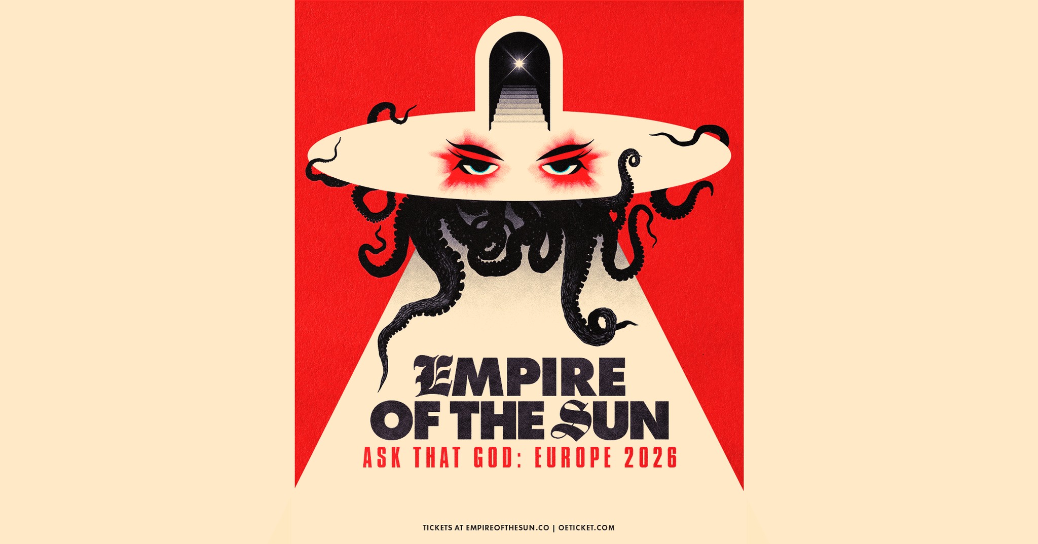 Die australischen Elektronik-Ikonen Empire of the Sun kehren im Mai im Rahmen ihrer „Ask That God Tour 2026“ nach Europa und Großbritannien zurück und laden das Publikum ein, ihre legendären Live-Performances an über 20 Terminen zu erleben. Das mehrfach mit Platin ausgezeichnete Duo wird auf dieser umfangreichen Tour Länder wieder besuchen, die bereits Teil ihrer sehnsüchtlig erwarteten Europa-Tour 2025 (ihre ersten Auftritte in Europa seit sechs Jahren waren) und die Show erstmals auch nach Irland, Norwegen, Schweden, Österreich, Dänemark und weitere Länder bringen.Mit einer Diskografie, die vier gefeierte Studioalben, Milliarden von Streams sowie bedeutende Remixe und Neuinterpretationen umfasst, darunter auch ihre aktuelle EP Alive (Reimagined), spielen Luke Steele und Nick Littlemore kontinuierlich mit klanglichen Grenzen und haben rund um das Projekt eine Welt geschaffen, die ganz ihnen gehört. Ihr sehnlichst erwartetes Album Ask That God aus dem Jahr 2024 markierte eine neue Ära für das Duo und war ihr erstes Album nach 8 Jahren und verbindet existenzielle Themen mit ihrem unverkennbaren, fantasievollen und nostalgisch angehauchten Synth-Pop-Sound. Mit Fan-Favoriten wie „Changes“, „Cherry Blossom“ und „Music On The Radio“ hat Ask That God über 500 Millionen globale Streams erreicht und Hörer*innen sowie ihr Live-Publikum auf der ganzen Welt begeistert.Ihre stets fesselnden Live-Shows bewegen sich an der Grenze zwischen Fantasie und Realität und entführen das Publikum in eine kaleidoskopische Welt aus spektakulären Visuals, theatralischer Inszenierung und einer Produktion von überlebensgroßem Ausmaß. Die Ask That God Tour 2025 entwickelte sich zu einer weltweiten Meilenstein-Tournee, die Headline-Shows in ganz Nordamerika und Europa ausverkaufte und die bislang ambitionierteste Live-Produktion der Band präsentierte. In Nordamerika zog die Tour Fans in große Metropolen wie Los Angeles, New York, Chicago, Toronto, Denver und Berkeley. Zusätzlich schmückte ein Auftritt im restlos ausverkauften Red Rocks Amphitheatre und Festivals wie Austin City Limits, CRSSD und Just Like Heaven die Tour. Empire of the Sun setzten diesen Erfolg in Europa fort: mit ausverkauften Shows in London, Paris, Berlin, Amsterdam, Mailand, Barcelona und Lissabon, darunter eine innerhalb kürzester Zeit ausverkaufte Show im Old Royal Naval College in London sowie Auftritte auf den großen Sommerfestivalbühnen. Die Tour führte auch nach Südamerika, wo die Band bei renommierten Festivals wie Lollapalooza Brasil (São Paulo) und Estéreo Picnic (Bogotá) auftrat. Damit unterstrichen Empire of the Sun erneut ihre anhaltende weltweite Strahlkraft und ihren Status als eine der visuell und klanglich markantesten Live-Acts der Welt.Mit beliebten Klassikern wie „Walking On A Dream“, „We Are The People“, „Alive“ und „High and Low“, aber auch Songs von ihrem aktuellen Album Ask That God, dürfen sich Fans bei der Europa Tour von Empire Of The Sun auf ein immersives und unvergessliches Live-Erlebnis freuen.